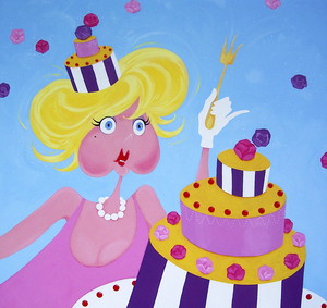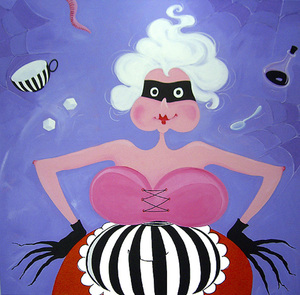 Deze gezellige, snoeperige dame past heel goed in een roze kinderkamer. Of in een keuken waar veel wordt gebakken? Of zelfs in een bakwinkel?
